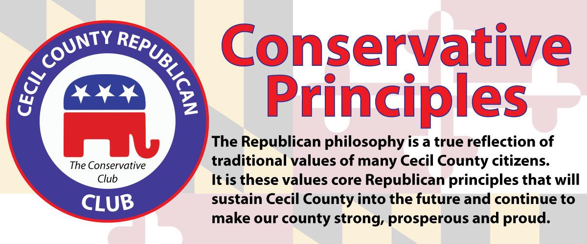 The Republican philosophy is a true reflection of traditional values of many Cecil County citizens. It is these values core Republican principles that will sustain Cecil County into the future and continue to make our county strong, prosperous and proud.